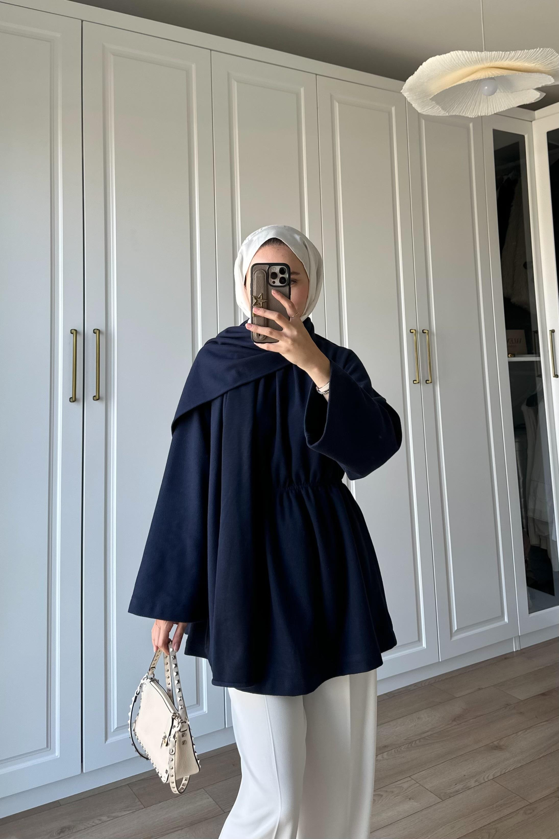 Atkı Detay Beli Büzgülü Tunik - LACİVERT (BQ-EK-3158)