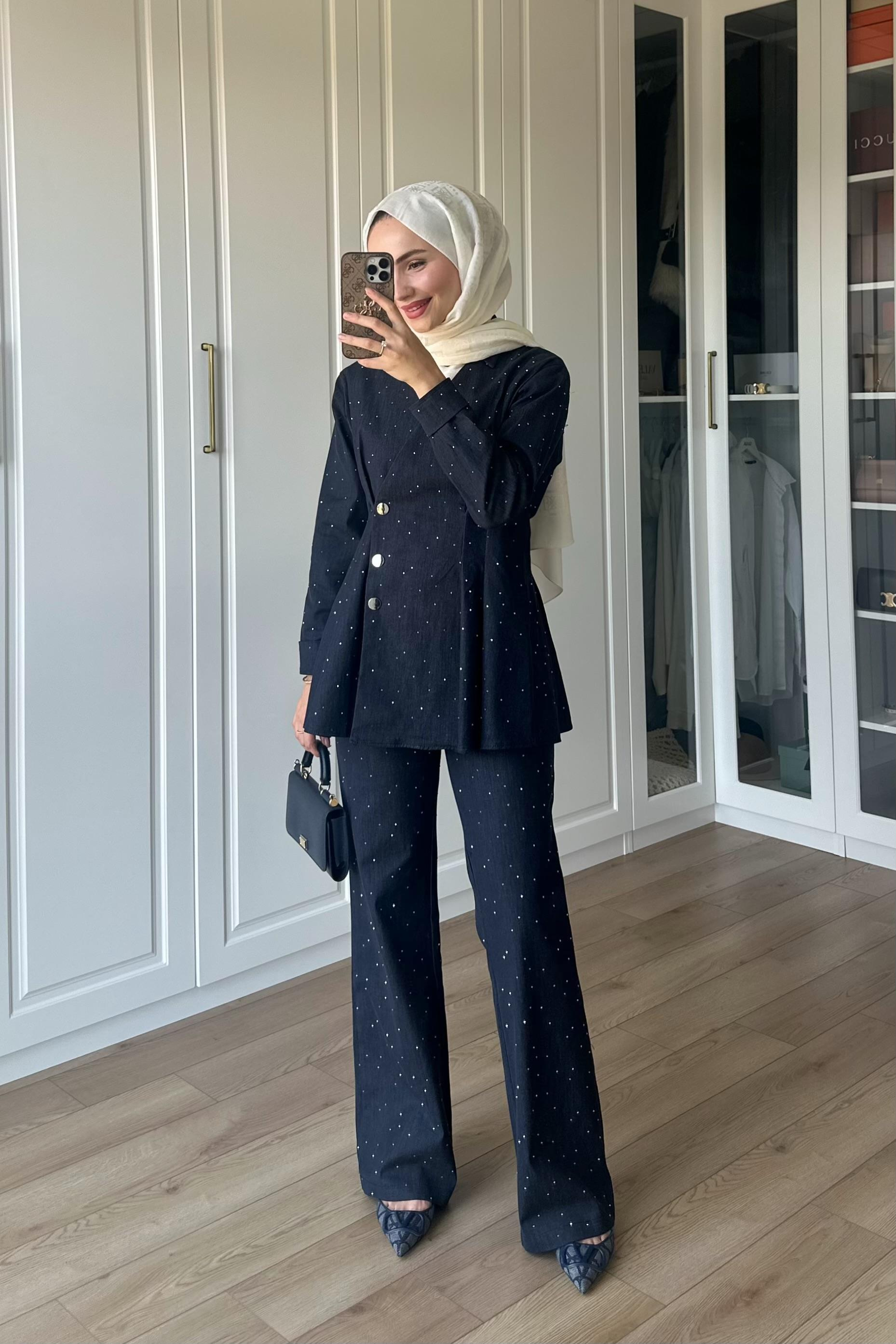 Darli Parıltı Detay Takım - LACİVERT (BQ-K-2339)