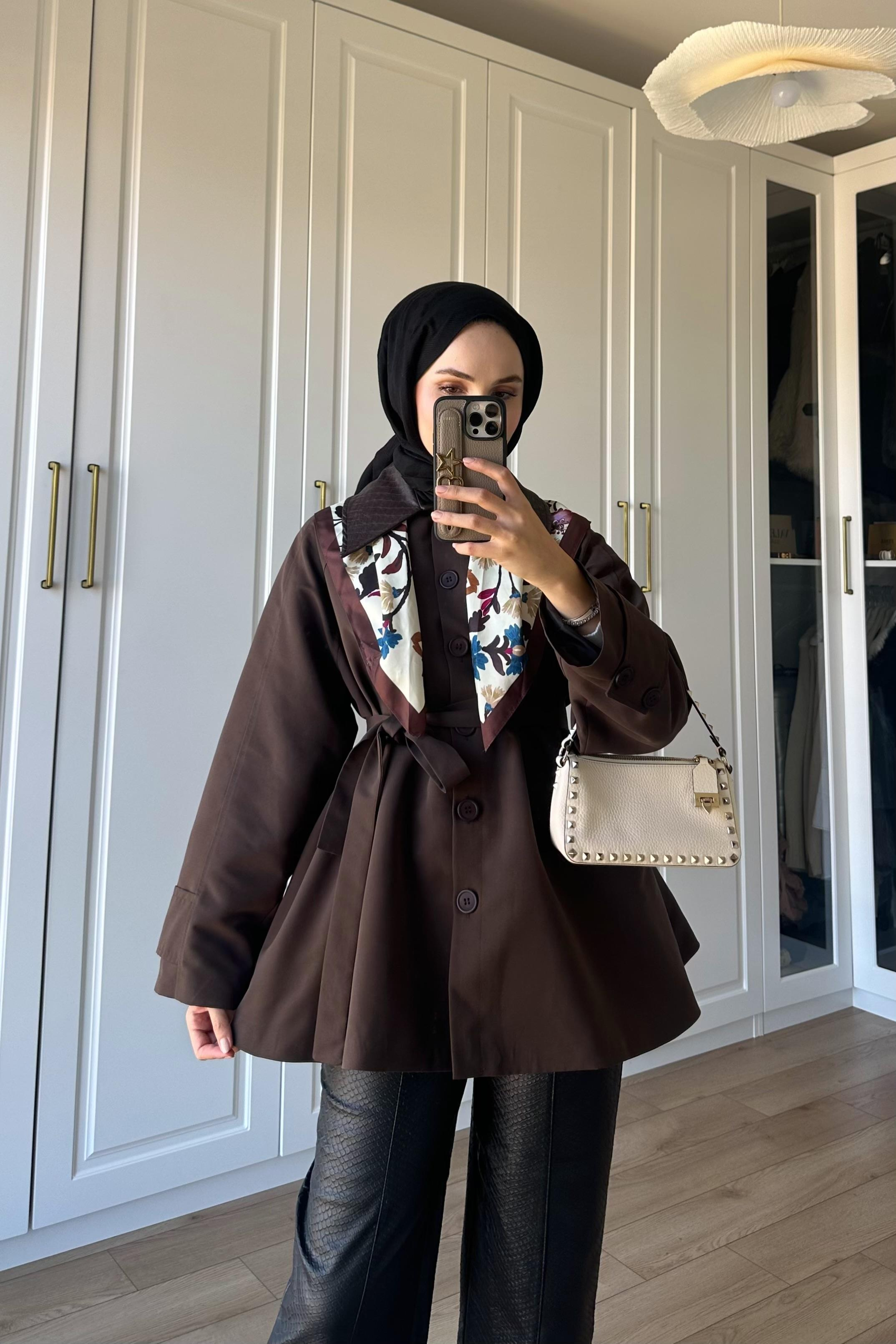 Monia Deri Yaka Detay Trençkot - KAHVE (BQ-HW-9342)