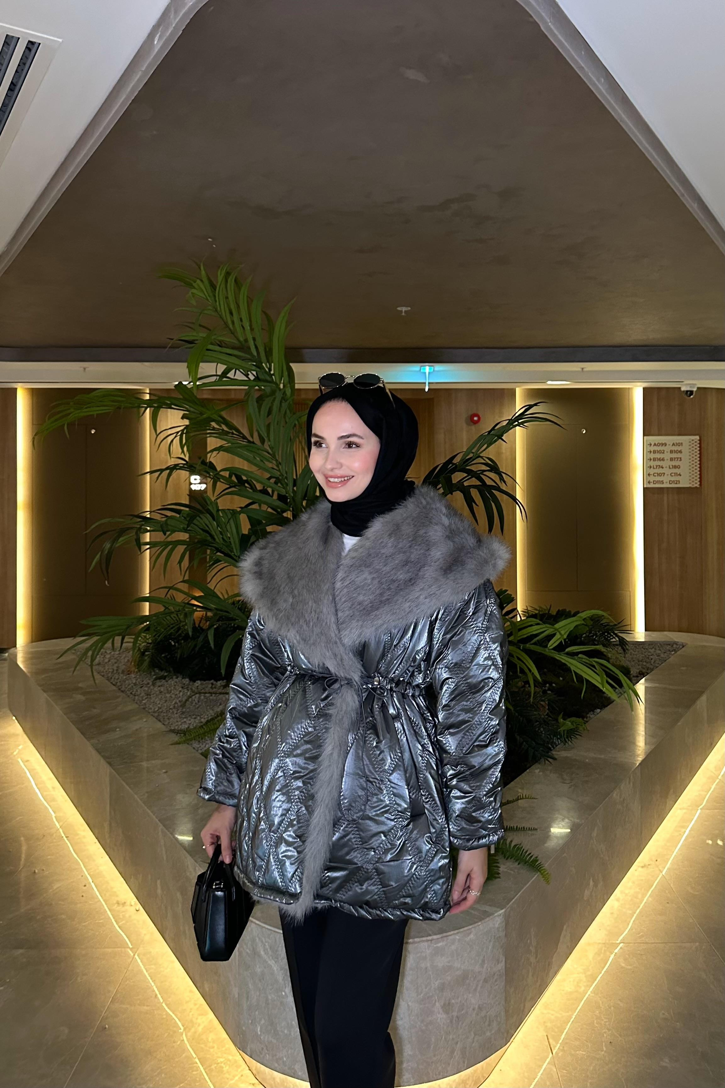 Samy Kürk Detaylı Mont - ANTRASİT (BQ-K-6171)