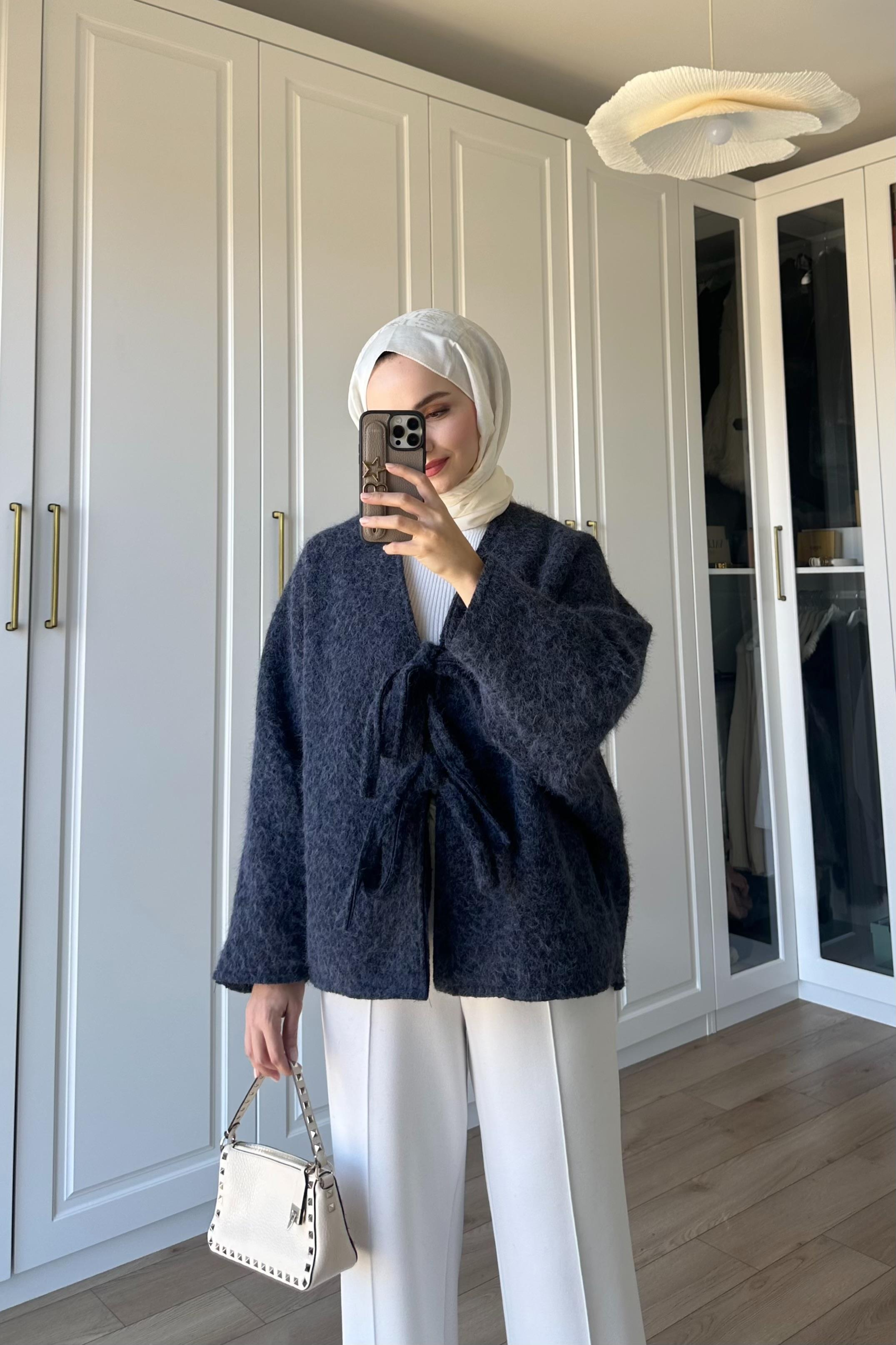 Solera Bağlama Detay Ceket - LACİVERT