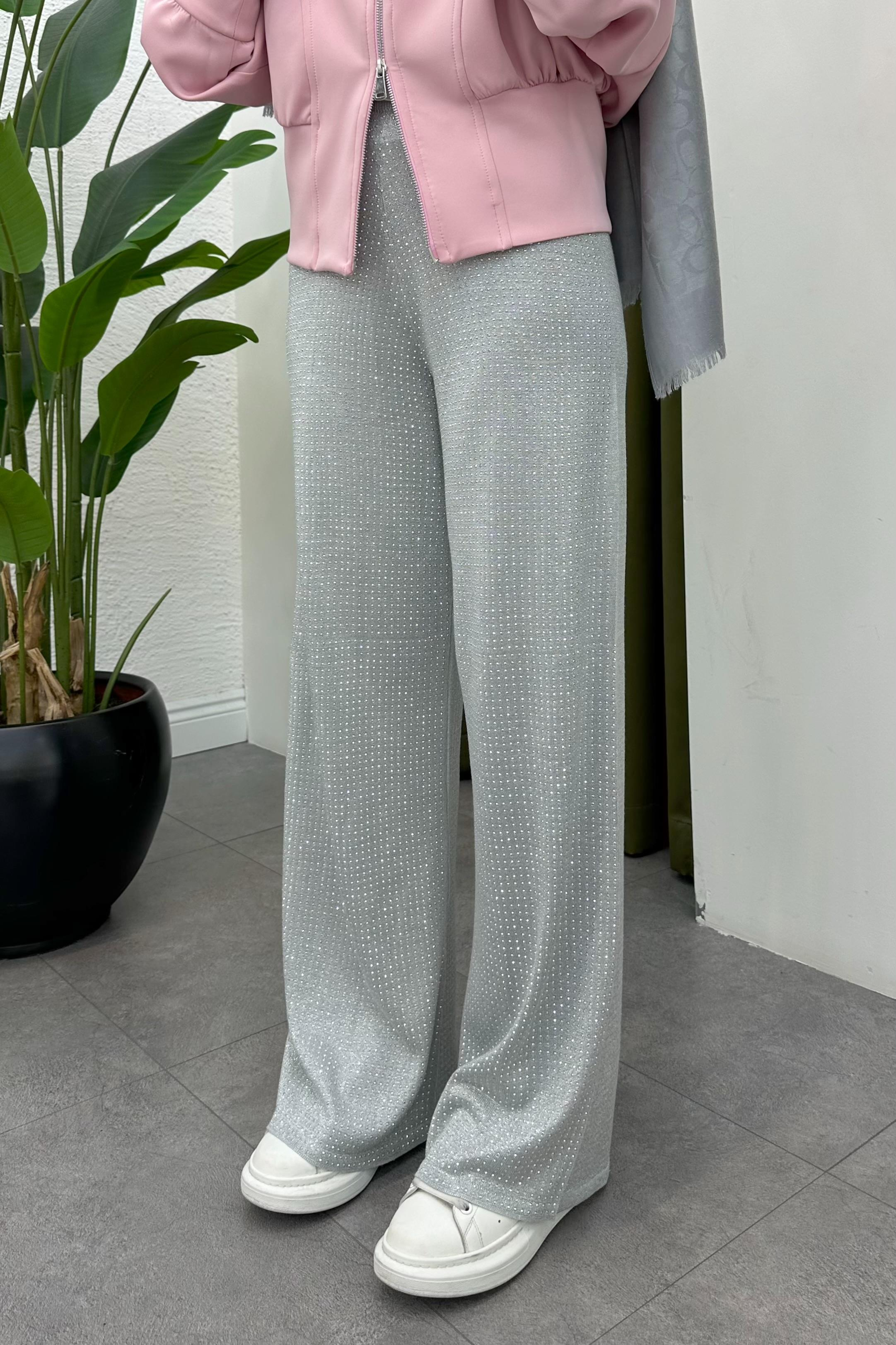 Taşlı Triko Pantolon - GRİ