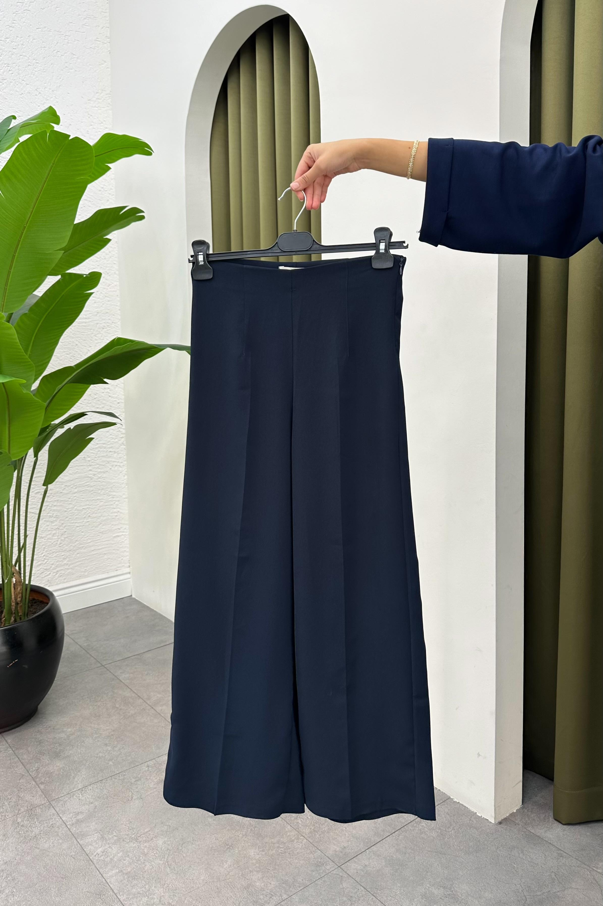 Ütü İzli Bol Paça Pantolon - LACİVERT