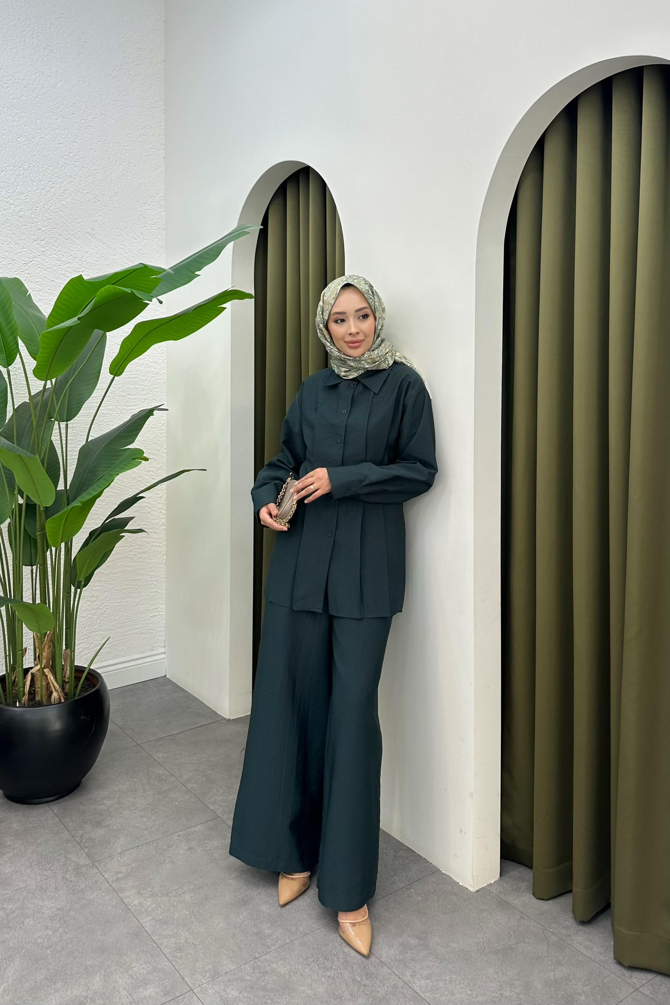 Zerina Belden Oturtmalı Takım - ZÜMRÜT YEŞİLİ
